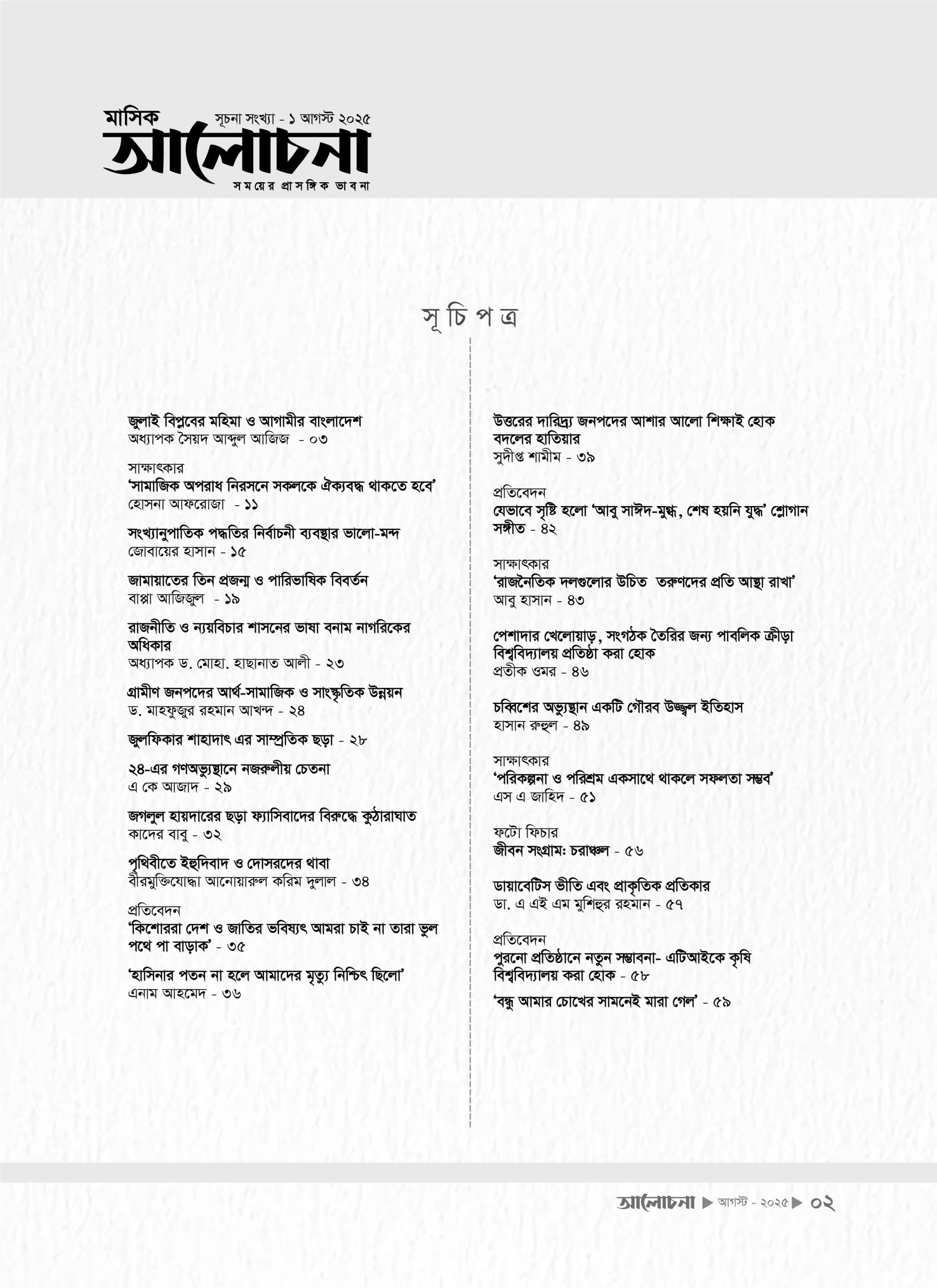 উপদেষ্টা সম্পাদক: অধ্যাপক সৈয়দ আব্দুল আজিজ, মোশাররফ হোসেন চৌধুরী, জোবায়ের হাসান