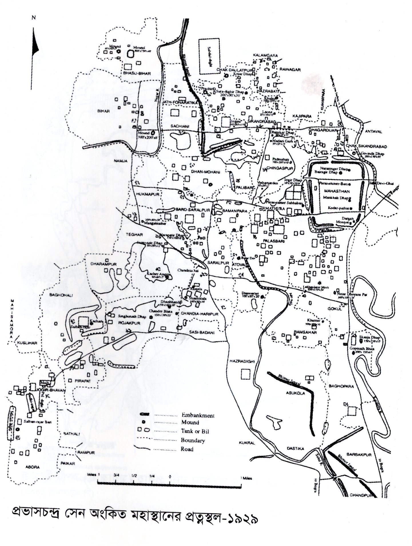 পুÐ্রনগরীর প্রতœমানচিত্র (সৌজন্যে প্রভাসচন্দ্র সেন, ১৯২৯ সা.অ.)