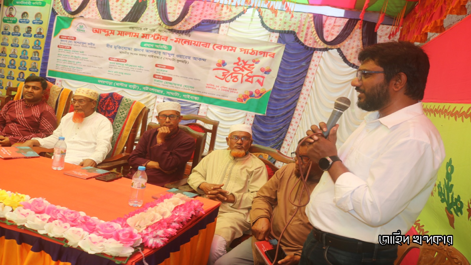 বাংলা নববর্ষের প্রথম ভোরে যখন চারদিকে নতুনের কেতন উড়ছে, ঠিক তখনই গাইবান্ধার সাঘাটায় যাত্রা শুরু করল এক অনন্য জ্ঞানের ভুবন। পহেলা বৈশাখ (১৪ এপ্রিল) মঙ্গলবার বেলা ১১টায় সাঘাটা উপজেলার বটতলা বাজারে উৎসবমুখর পরিবেশে আনুষ্ঠানিকভাবে উদ্বোধন করা হলো ‘আব্দুস সালাম মাস্টার-মনোয়ারা বেগম পাঠাগার’। উদ্বোধনী অনুষ্ঠানে প্রধান অতিথি হিসেবে উপস্থিত ছিলেন গাইবান্ধা ৫ (সাঘাটা-ফুলছড়ি) আসনের সংসদ সদস্য ও বীর মুক্তিযোদ্ধা আলহাজ্ব আব্দুল ওয়ারেছ আকন্দ। তিনি ফিতা কেটে এই জ্ঞানকেন্দ্রের শুভ সূচনা করেন।